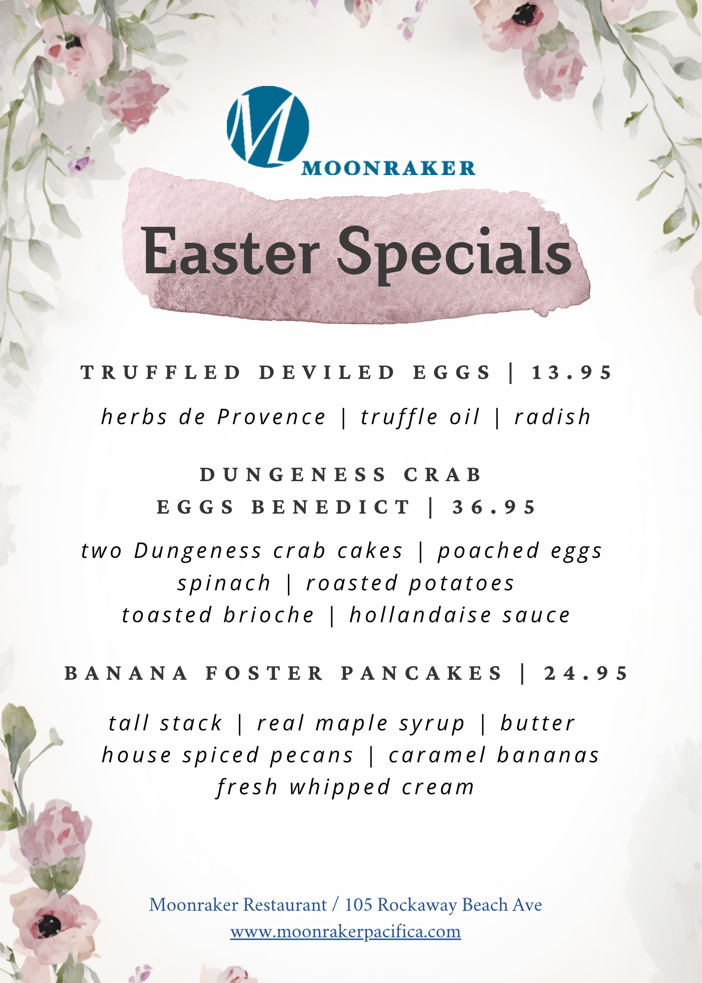 Located on the Pacific Coast, Moonraker Restaurant makes the perfect dining destination